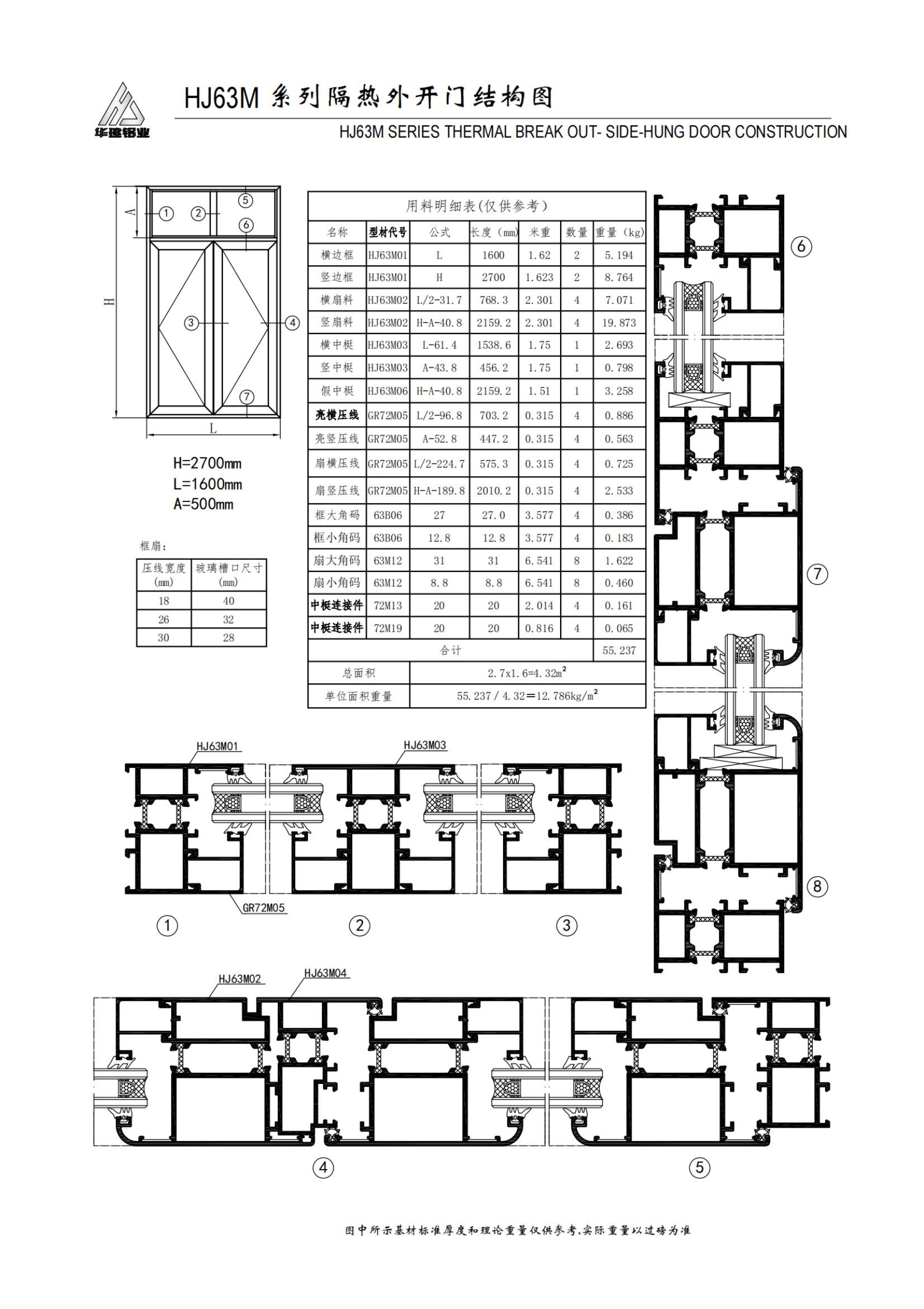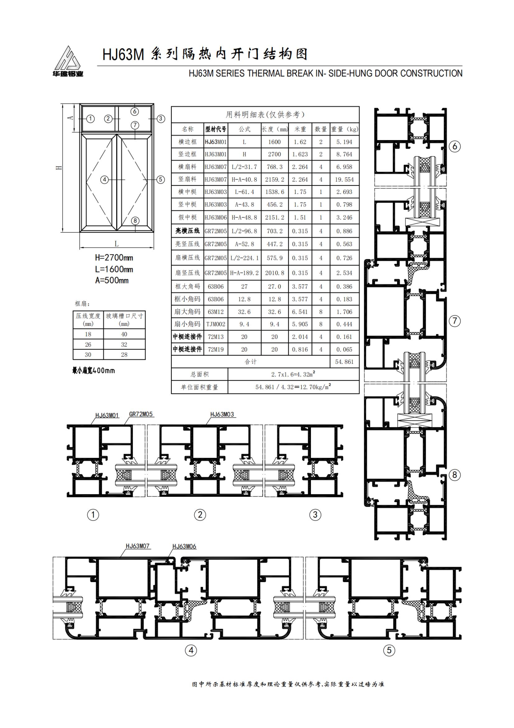 Puerta batiente aislada serie HJ63M